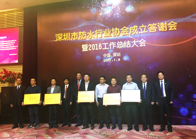 2017年1月8日,“深圳市防水行業(yè)協(xié)會成立答謝會暨2016工作總結(jié)大會”在南國錦繡鵬城隆重召開,會議以“開拓創(chuàng)新,和諧共進(jìn),不忘初心,逐夢前行”為主題。出席本次會議的有深圳市住建局,質(zhì)檢總站、深圳市社會組織管理局等政府部門相關(guān)領(lǐng)導(dǎo)、中國建筑防水協(xié)會秘書長朱冬青、副會長苗燕、中國建筑業(yè)協(xié)會建筑防水分會秘書長曲慧、湖北工業(yè)大學(xué)院校專家、20多個省市協(xié)會領(lǐng)導(dǎo)以及各地防水企業(yè)代表共計240余人。