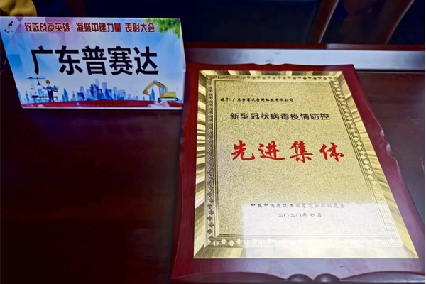2020年8月10日,中國建筑五局東莞分公司舉行“致敬戰(zhàn)役英雄·凝聚中建力量”表彰大會,對新型冠狀病毒疫情防控工作中,涌現(xiàn)的先進集體和先進個人進行表彰,廣東普賽達密封粘膠有限公司應(yīng)邀出席,并榮獲新型冠狀病毒疫情防控“先進集體”榮譽稱號。