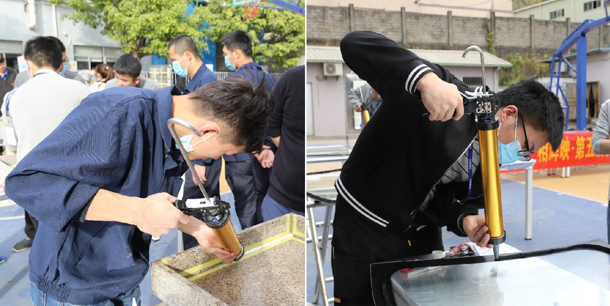 本次比賽共選拔出20名選手參與角逐,通過自主選擇和抽簽,分成汽車用膠組和建筑用膠組,以兩兩PK的淘汰賽制選取優(yōu)勝選手晉級。