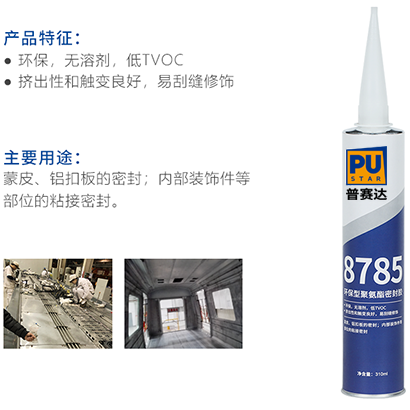 韌馳8785環(huán)保型聚氨酯密封膠是一種單組分濕氣固化聚氨酯膠,環(huán)保低 VOC,具有良好的密封性能,對基材無腐蝕、無污染,對環(huán)境無污染,與金屬、玻璃等多種基材粘接性較好。